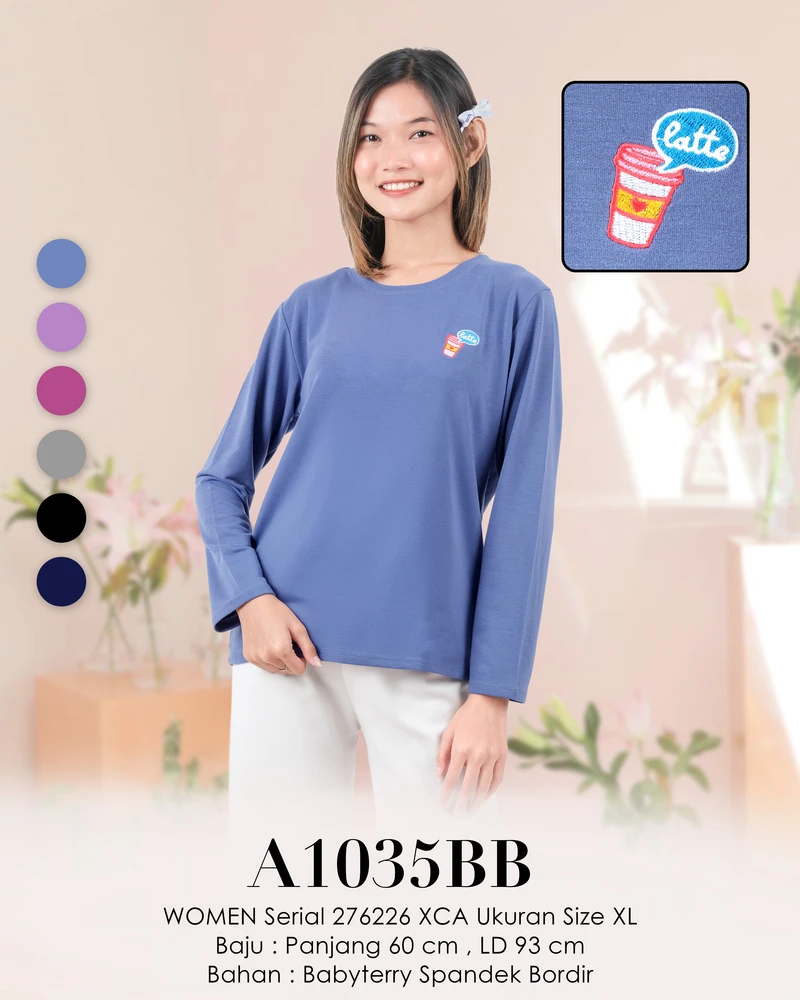 Material produk terbuat dari babyterry spandek bordir. Disarankan pencucian dengan perlakuan lembut. Tidak disarankan mencuci dengan air panas.