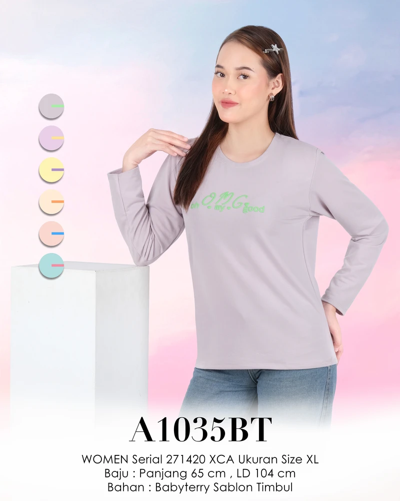 Material produk terbuat dari babyterry dengan detail sablon timbul. Disarankan pencucian dengan perlakuan lembut. Tidak disarankan mencuci dengan air panas.