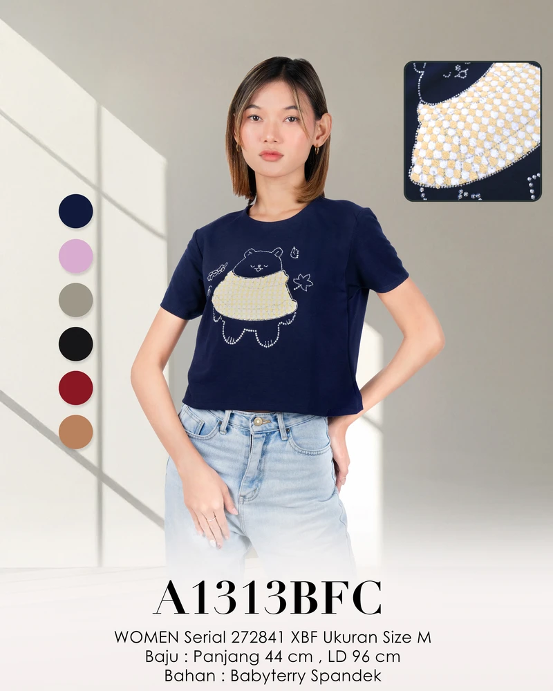 Material produk terbuat dari Babyterry Spandek. Disarankan pencucian dengan perlakuan lembut. Tidak disarankan mencuci dengan air panas.