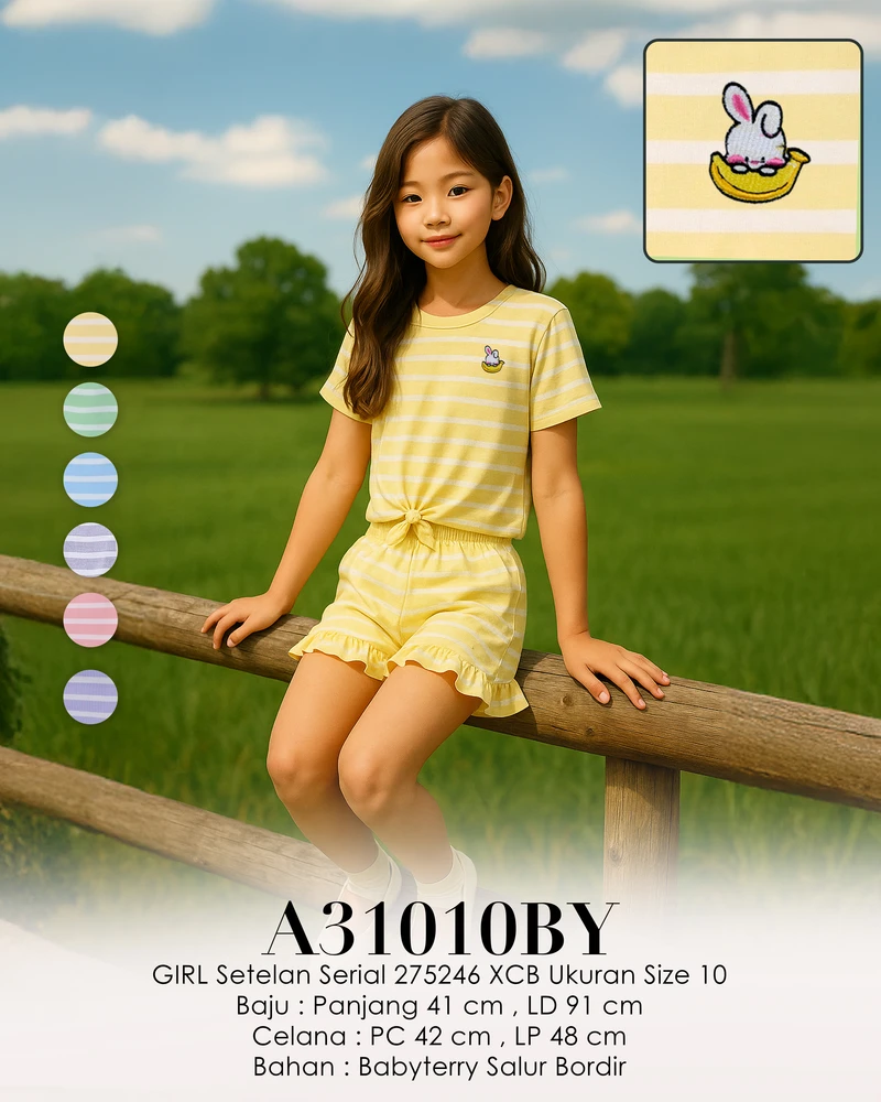 Material produk terbuat dari Babyterry salur bordir. Disarankan pencucian dengan perlakuan lembut. Tidak disarankan mencuci dengan air panas.
